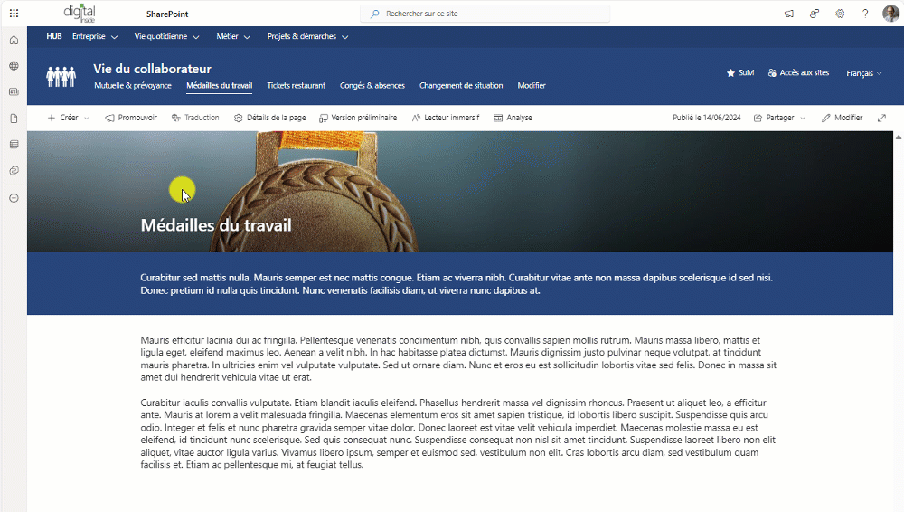 A06 - SECTION "PLEINE PAGE" / SECTION VERTICALE - Tu vas penser que je chipote, mais bon : c'est un point que les responsables de com' me demandent souvent. La "section verticale" permet de mettre une colonne à droite d'une page SharePoint. A gauche, on peut mettre des sections : 1, 2, 3 colonnes... Mais impossible de mettre une section "pleine page". Dans ce contexte, cela permettrait d'intégrer une image qui "remplisse" tout l'espace alors qu'avec une section "colonne", il y a une marge tout autour.