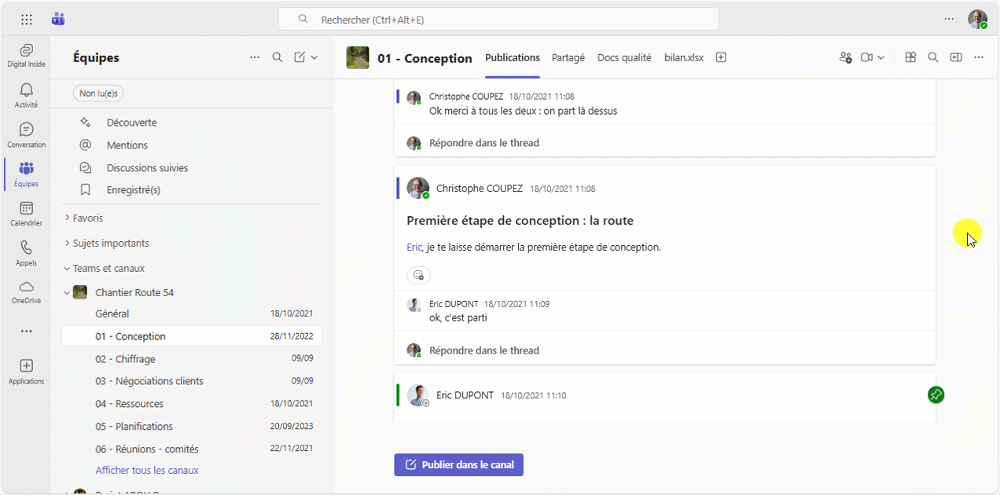 Mais quand je clique sur le canal que je cherchais, Teams ne positionne pas automatiquement l'équipe à gauche de l'écran, ce qui m'oblige ensuite à scroller pour trouver l'équipe correspondante. Dommage : le temps gagné pour trouver le canal, je le perds ensuite pour retrouver l'équipe correspondante en scrollant dans le bandeau à gauche.
