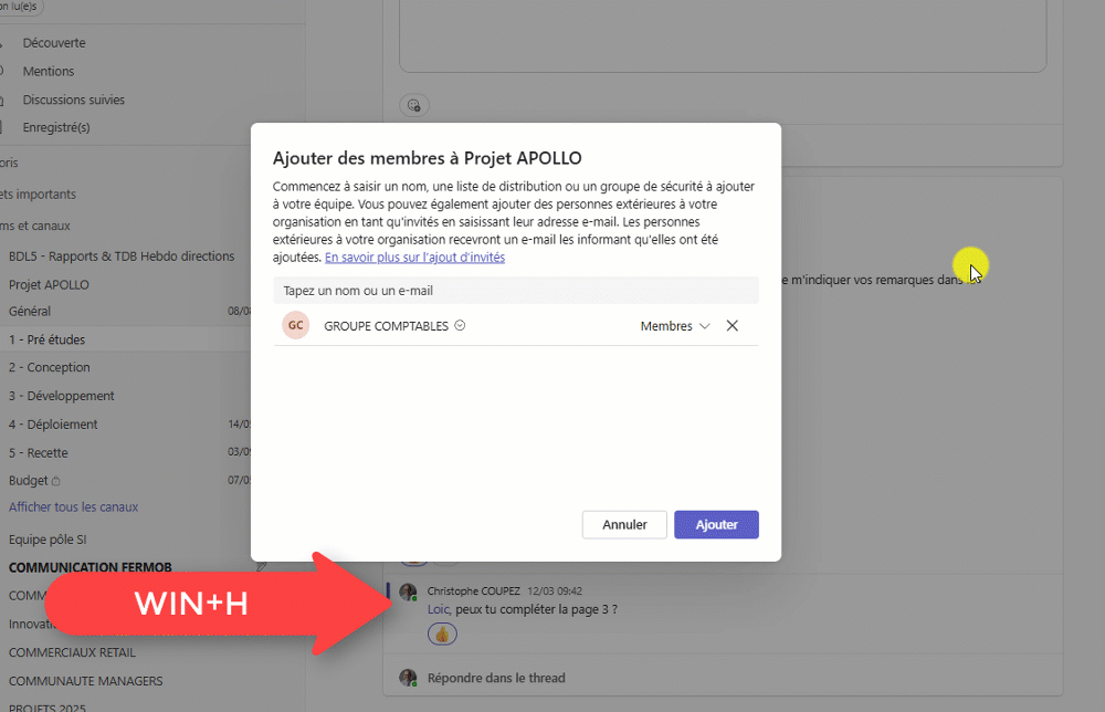 B21 - CANAUX PRIVÉS & GROUPE : à propos de groupe, de la même manière ce serait super de pouvoir positionner un groupe de sécurité, ou un groupe M365 comme "membre" d'un canal privé. Ce n'est pas possible pour le moment.